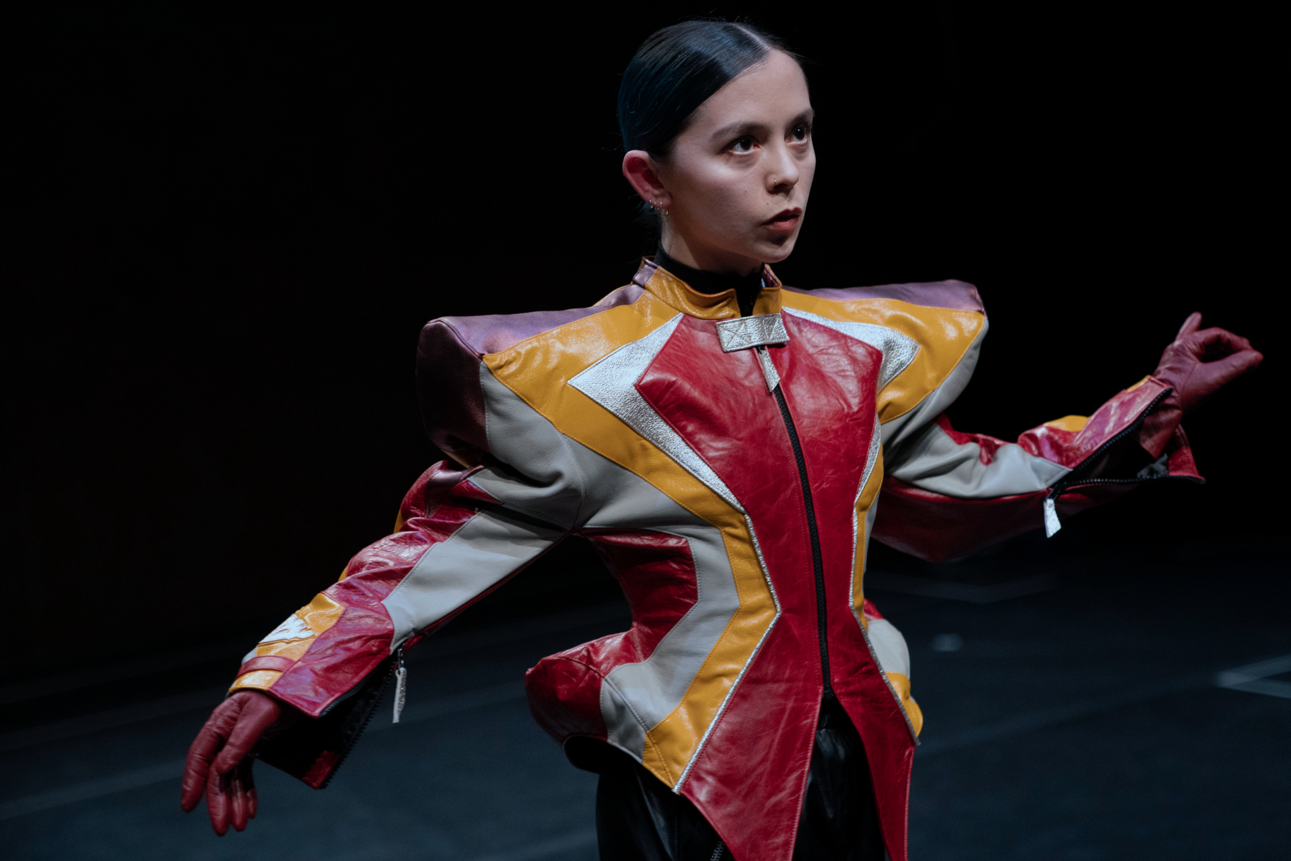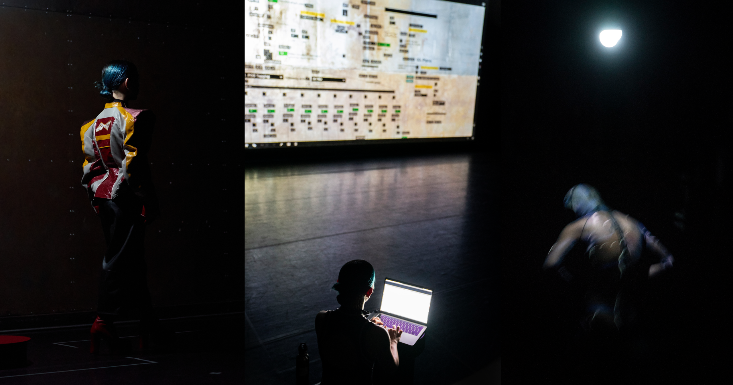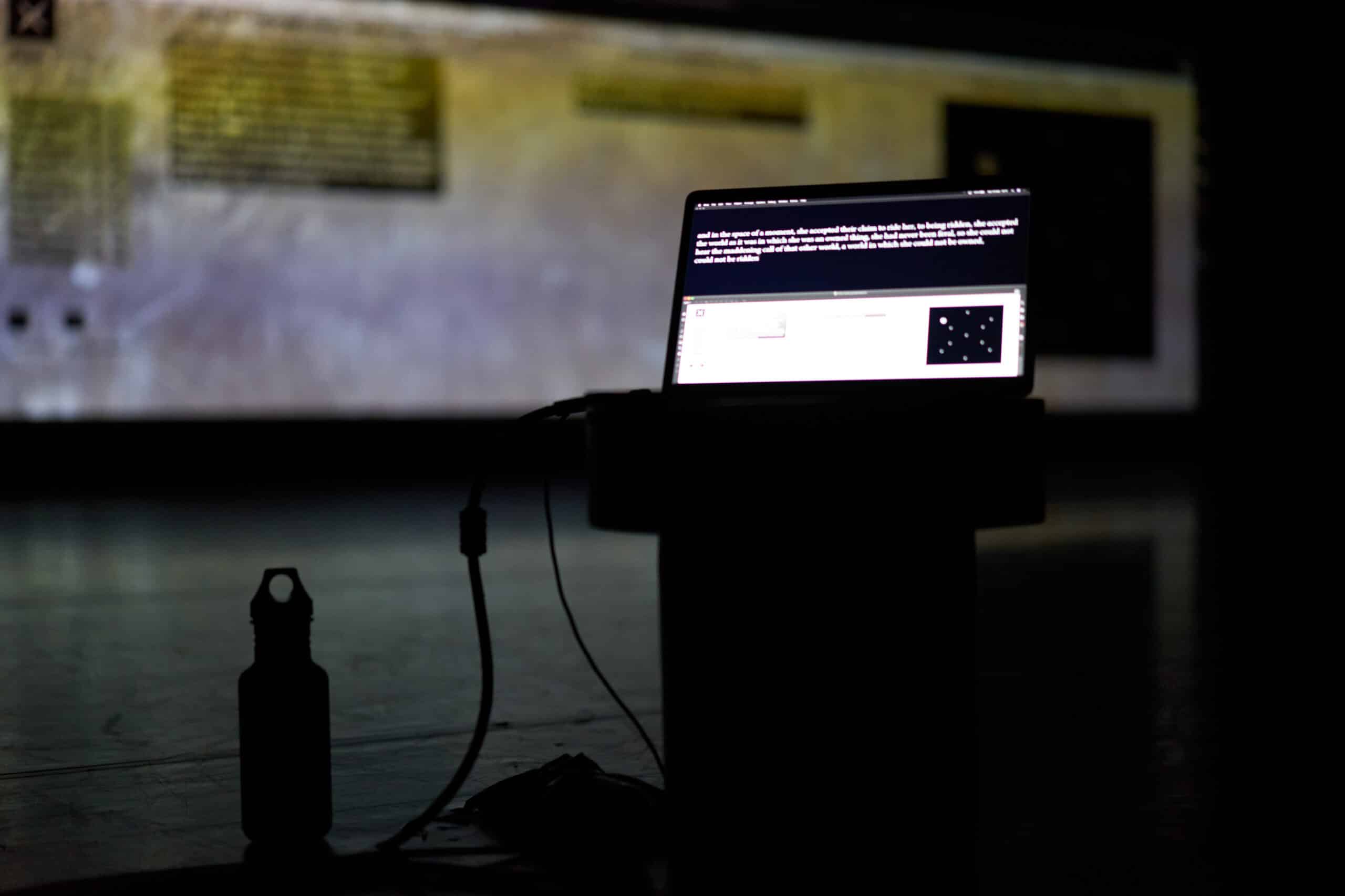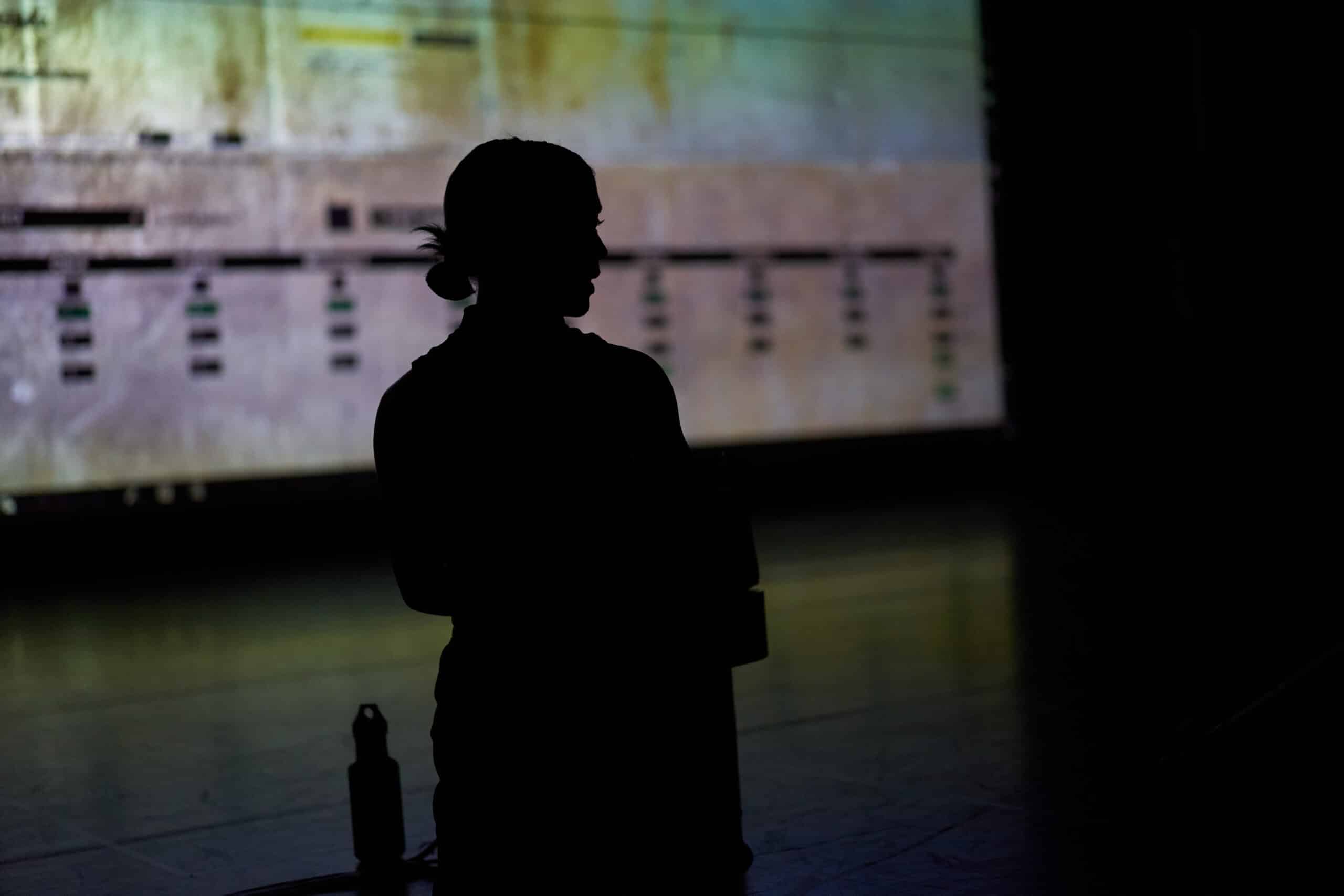 Powered by sound programming and computational linguistics, the system influences the performance moment to moment, forcing Courtney into a heightened state of responsiveness. This algorithmic presence becomes both adversary and partner, mirroring the invisible systems that shape behaviour, constrain choice, and blur the line between autonomy and coercion. A charged atmosphere emerges in which vigilance becomes an oppressive survival strategy. Through the friction between body and code, between control and surrender, the work opens up urgent questions – What does it mean to be prepared? Where does safety begin and who defines it? In navigating these questions, Courtney exposes the emotional and psychological labour of navigating systems, seen and unseen, that ask women to be constantly aware, constantly calculating, constantly on guard.